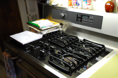 The fancy stove (that we've had awhile) - note little warming oven on the